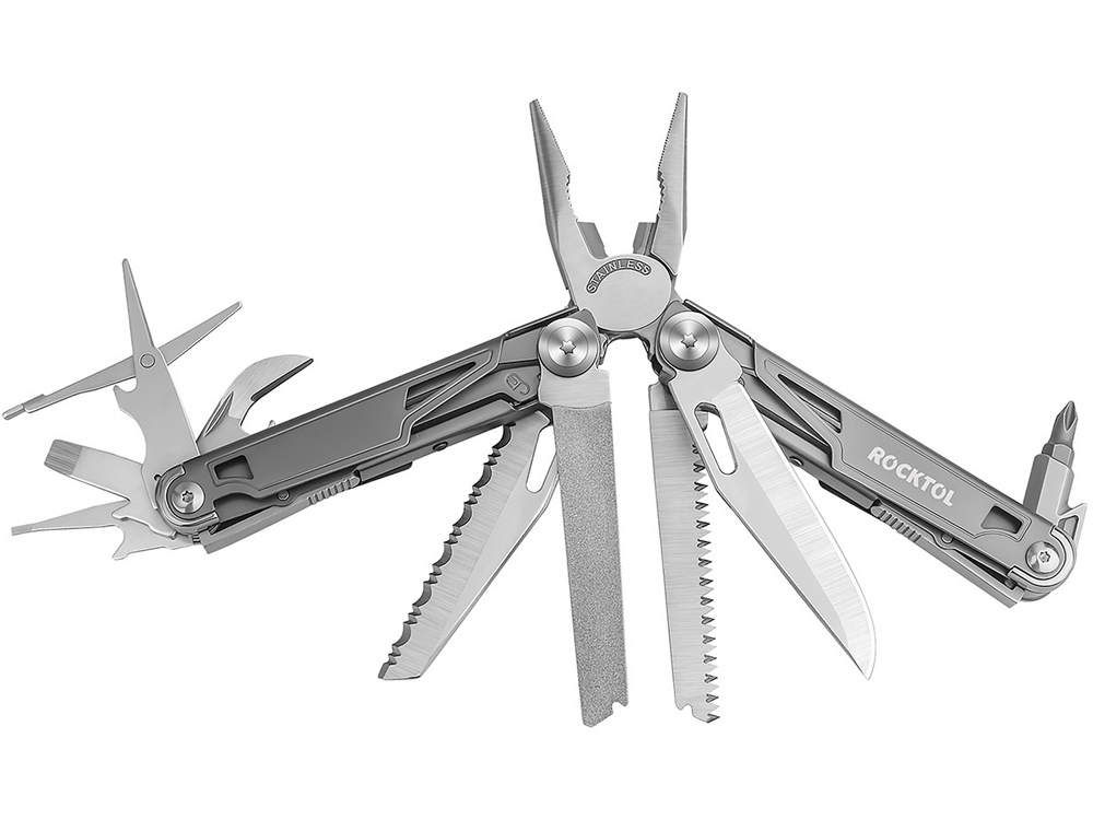 Многофункциональный инструмент Rocktol 19 в 1 с рукояткой из титана и сверхострым ножом из нержавеющей стали 7Cr17 твердостью до HRC 58. Они идеально подходят для тяжелых работ и приключений на свежем воздухе. Каждый инструмент оснащен предохранительным механизмом блокировки для дополнительной безопасности, а прочная конструкция из нержавеющей стали гарантирует его долговечность. Кроме того, компактная и легкая конструкция, а также прочный нейлоновый чехол позволяют легко носить его с собой, куда бы вы ни отправились. Не соглашайтесь ни на что, кроме надежности — выбирайте этот первоклассный мультитул для повседневных задач или для следующего приключения на свежем воздухе!