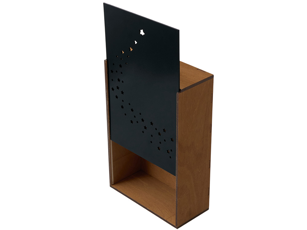 Изящная подарочная коробка из натуральной фанеры с перфорацией в виде звёзд создаёт эффект лёгкого мерцания и волшебства. Идеально подходит для упаковки небольших подарков, сувениров или памятных мелочей. Такой дизайн превращает обычный подарок в особенный.