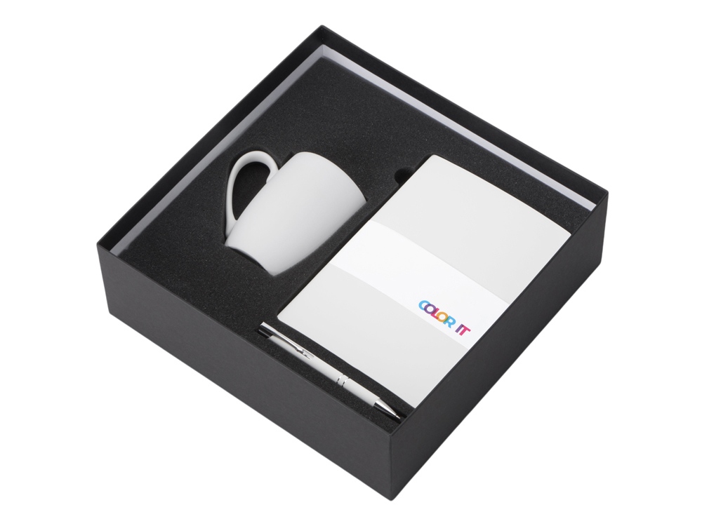 | Материал товара | блокнот - искусственная кожа с покрытием soft-touch, ручка - алюминий с покрытием soft-touch, кружка - фарфор с покрытием soft-touch, коробка - картон |