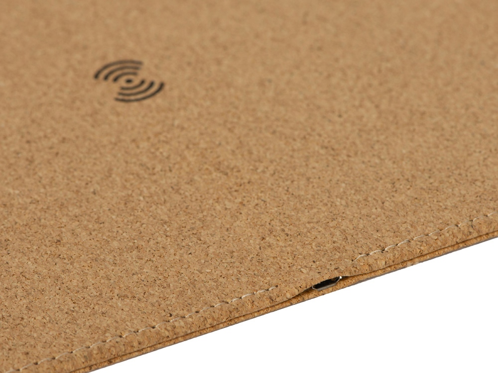 Большой (45 х 40 см) коврик из пробки для мышки, который может заряжать Qi-совместимые устройства методом беспроводной зарядки. Коврик позволяет разместить не только мышку, но и небольшой ноутбук или планшет. Коврик решает проблему скольжения мышки, обеспечивает бесшумное перемещение мыши по поверхности, позволяет декорировать интересным способом рабочее место. В комплекте длинный зарядный кабель 100 см. Коврик не складывается.