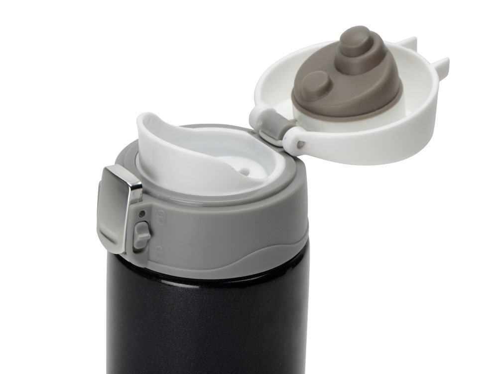Благодаря своим габаритам термокружка легко поместится в сумочку или портфель, а система блокировки крышки защитит содержимое, не дав напитку пролиться.